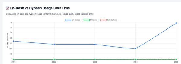 The basic idea was this: LLMs love inserting em-dashes and en-dashes everywhere. The hypothesis is that after the introduction of ChatGPT, (plus some time for the technology to actually reach newsrooms), we would see an increase in em-dash or en-dash use over time. That increase can obviously also be explained by other causes, such as changed style guides, new authors coming into the team, or changes in the CMS. But given enough data, we might be able to differentiate between these causes.