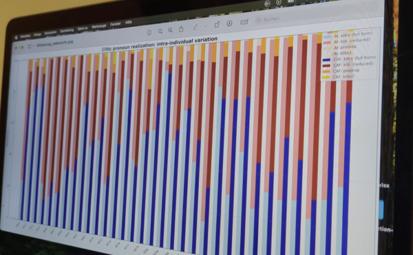 Instead, Claude Code wrote Python scripts for each step. One script converted all Excel files to CSV with the right delimiter. Another split the annotation column into four columns. A third filtered out the irrelevant forms and wrote them to separate files. Then came the analysis scripts that counted the three possible values of her linguistic phenomenon per speaker and setting, followed by summary statistics comparing settings and analyzing factors, clustering analysis, and finally a visualization script that generated charts.